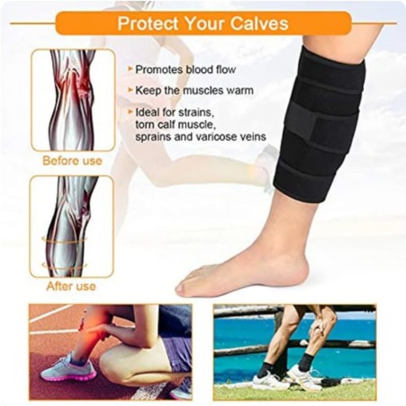 Product Description The Calf Support is a versatile compression wrap designed to provide support to the calf and shin. It is made with a lightweight neoprene fabric that is perfect for exercising, and secures in place with three extra-strength latching straps. Ideal for injuries and sprains of the calf or shin muscles.Wear to warm muscles before strenuous activities or all day for constant, adjustable compression.Soft neoprene blend retains body heat for increased circulation to relieve pain.