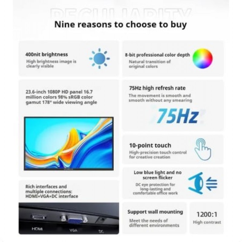 17/22 inci komputer touch display touch screen rintangan kapasitans wall-mounted monitoring supermarket cashier susu teh pakaian kecantikan ibu dan kedai bayi berkenaan