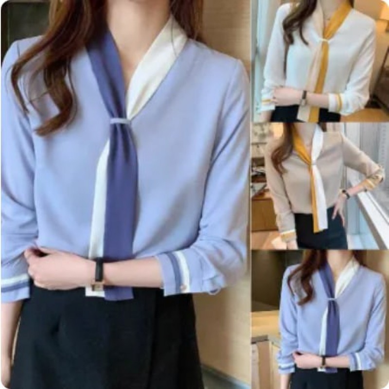 Baju wanita Chiffon Blouse Gaya Korea pakaian pejabat wanita baju gaya korea wanita blaus elegan baju wanita