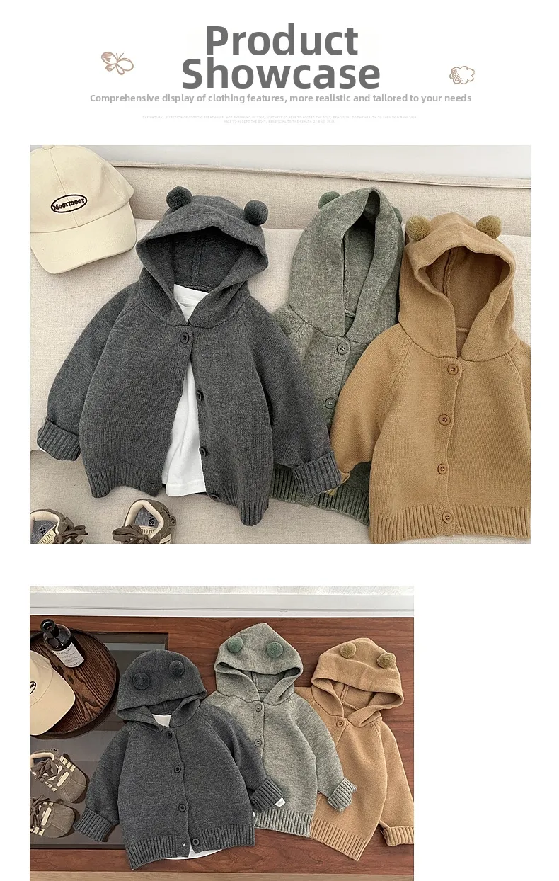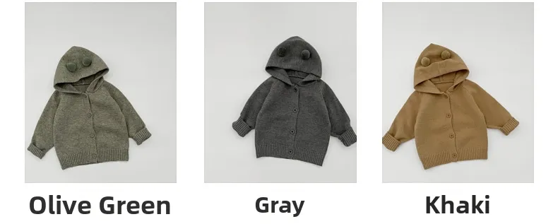 Korean Style Kids Knitted Hoodie Jacket 2025 Autumn New Arrival Unisex Baby Cute Cardigan Infant Autumn Clothes Polyester Fiber