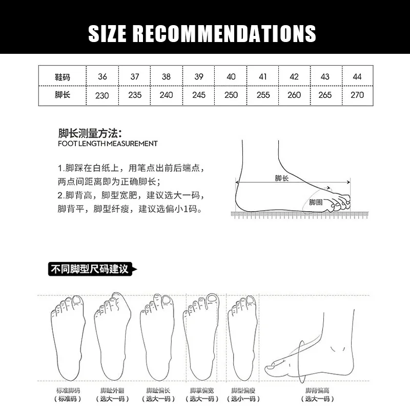 Buyers friend, when placing orders, please kindly note that all our shoes are sent out in accordance with The European size. The comparison table of sizes is only for reference, and the actual size is based on the European size of the real object