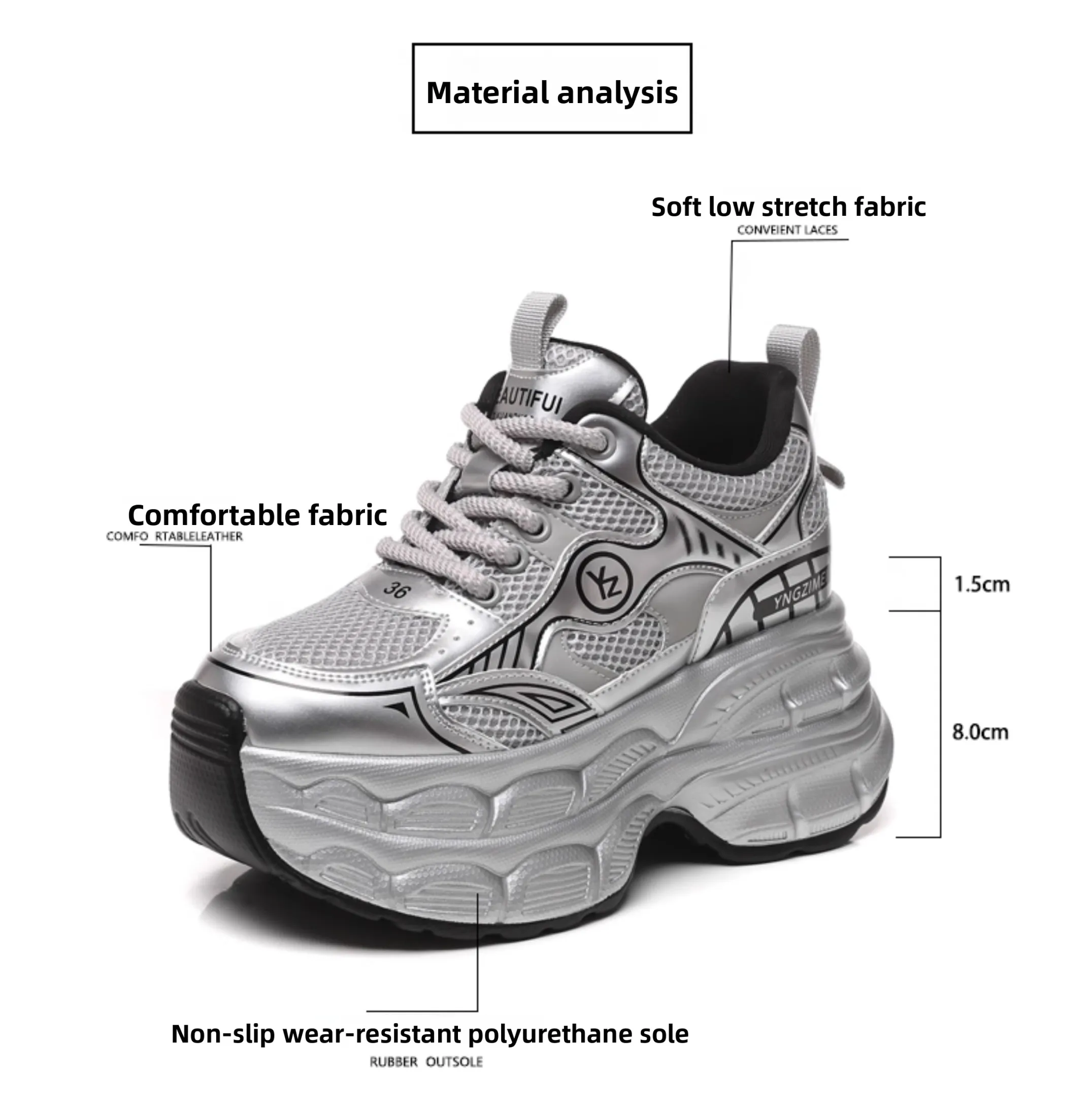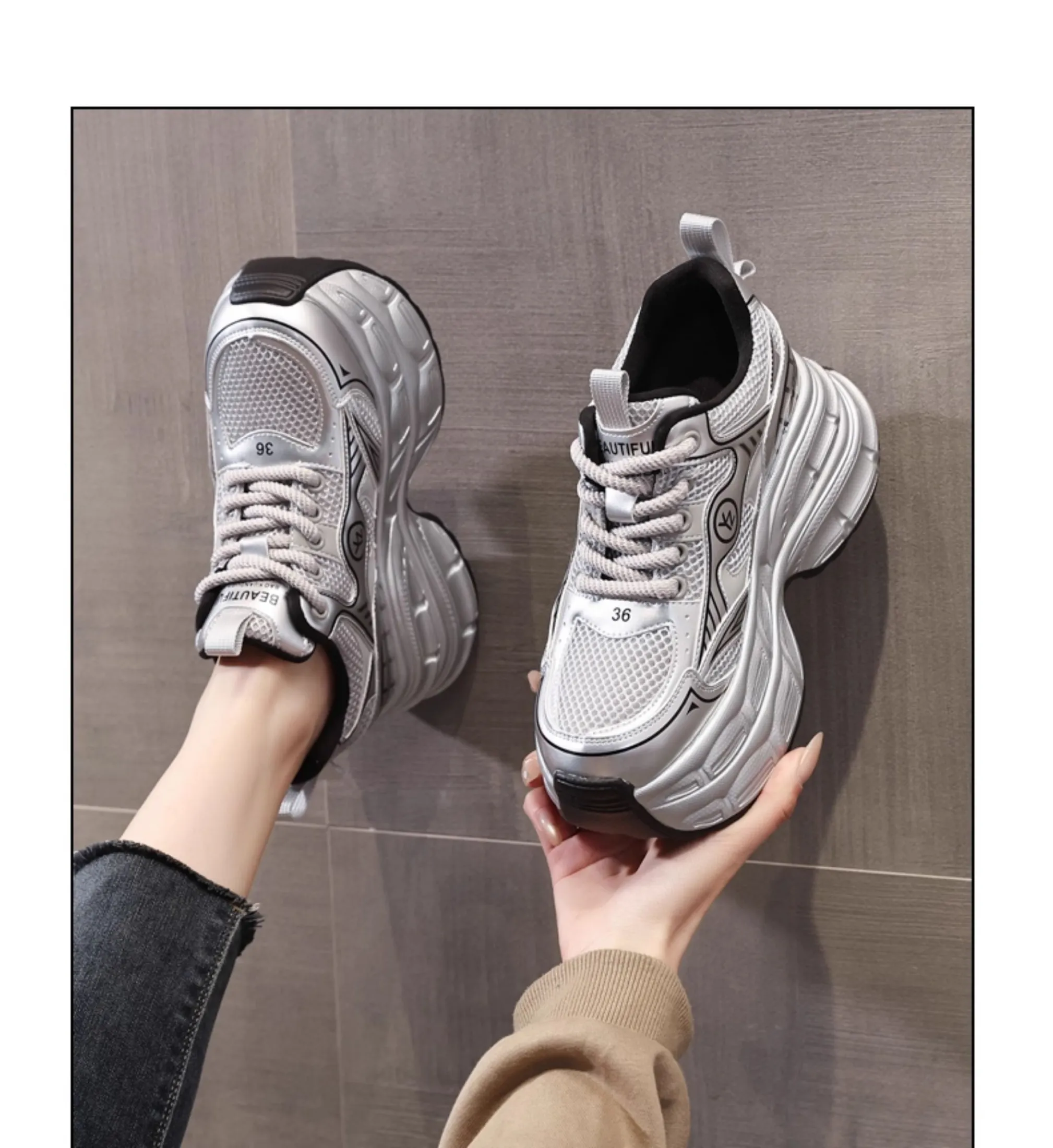 With a casual wind style and silver sporty look, these shoes are versatile enough to match any outfit.
