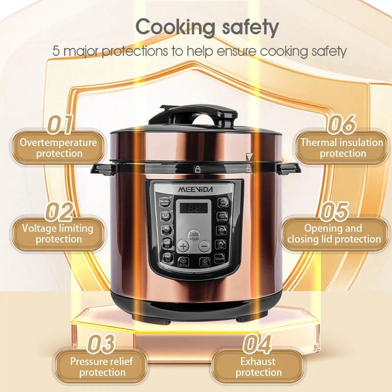 5 major protections to ensure cooking safety: over temperature protection, pressure limiting protection, pressure relief protection, exhaust protection, lid opening and closing protection, insulation protection;