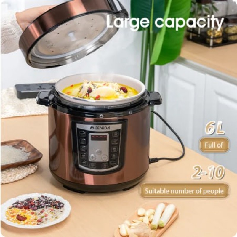 6L large capacity: can stew about 4 pounds of whole chicken, can cook about 16 bowls of rice, suitable for 6-11 people to share delicious food with the whole family;