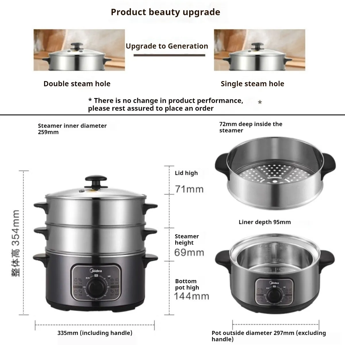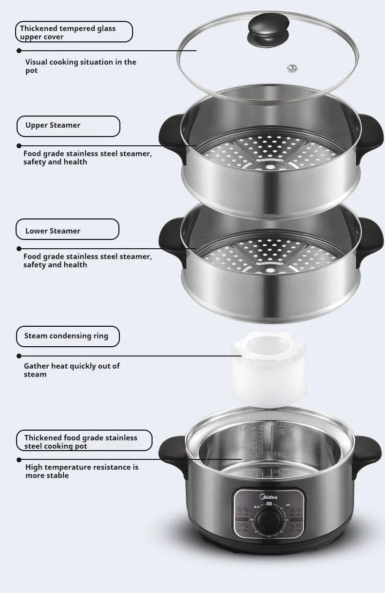 • Package Includes : 1x New Midea 3 Tiers Electric Steamer 220V Multi-function Stainless Steel