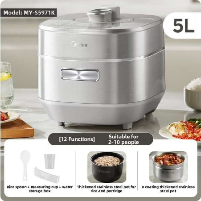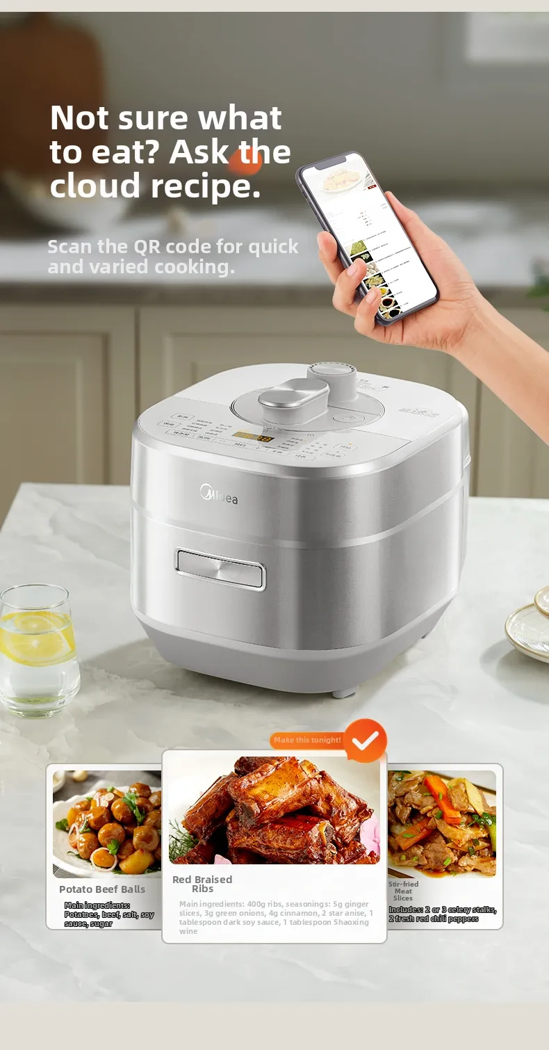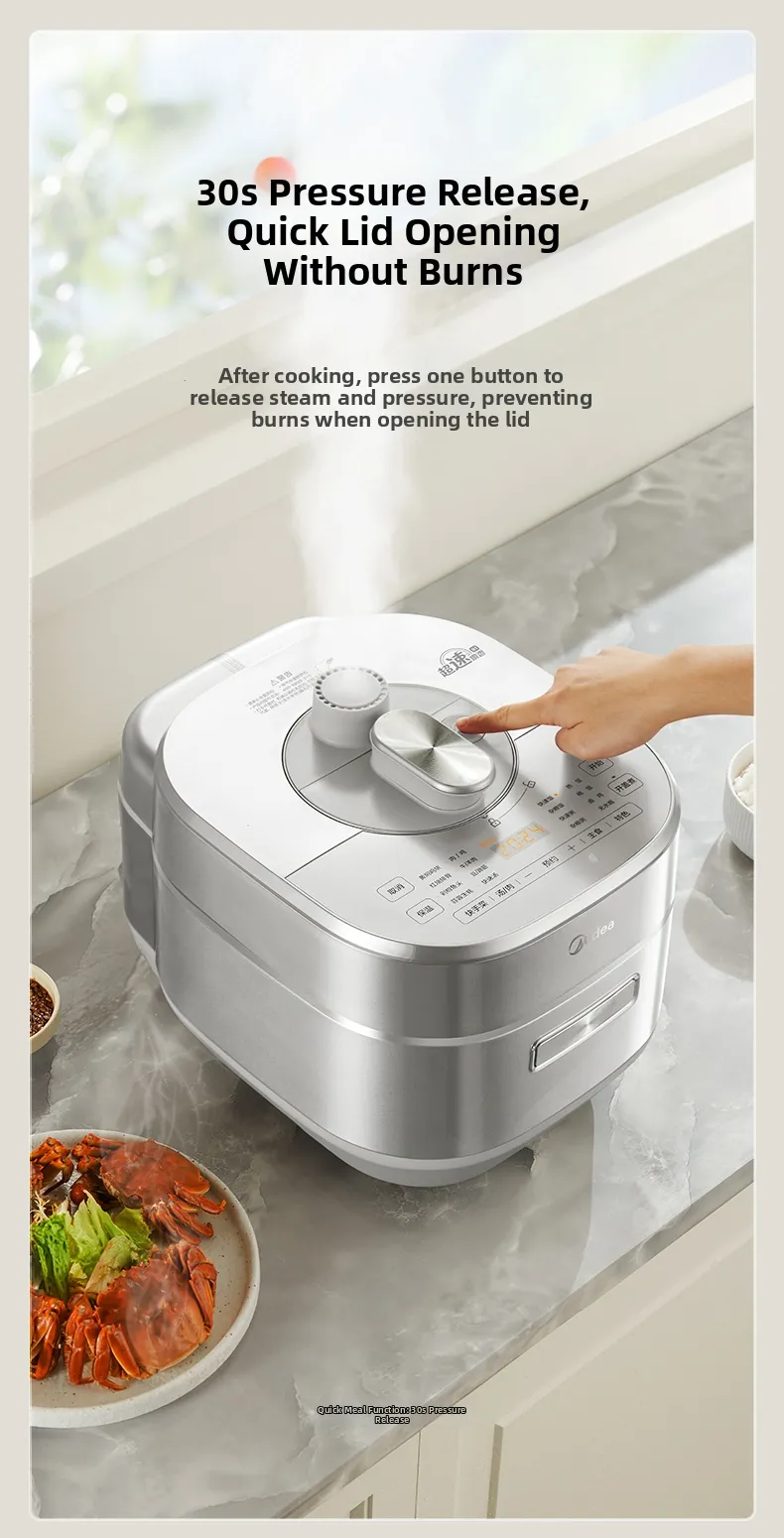 Designed for home use, this electric pressure cooker is a versatile addition to any kitchen, simplifying meal preparation.