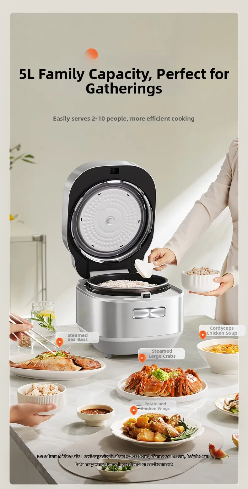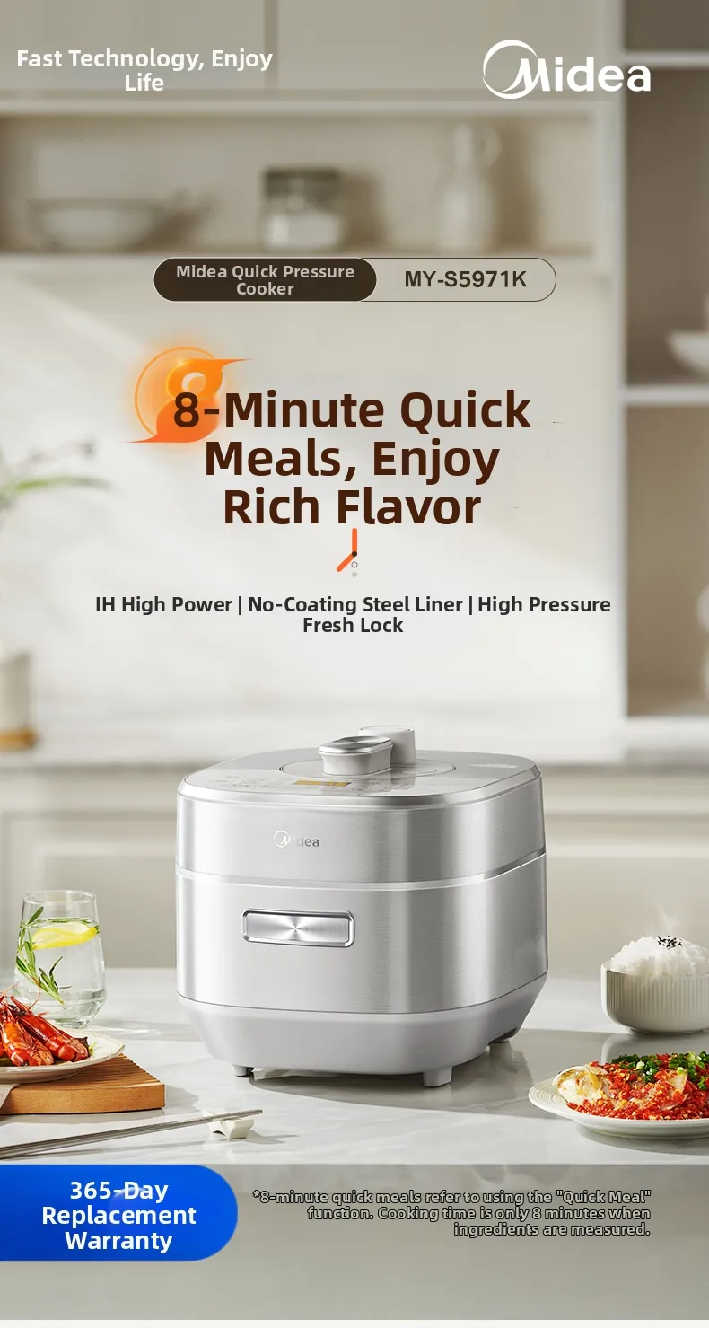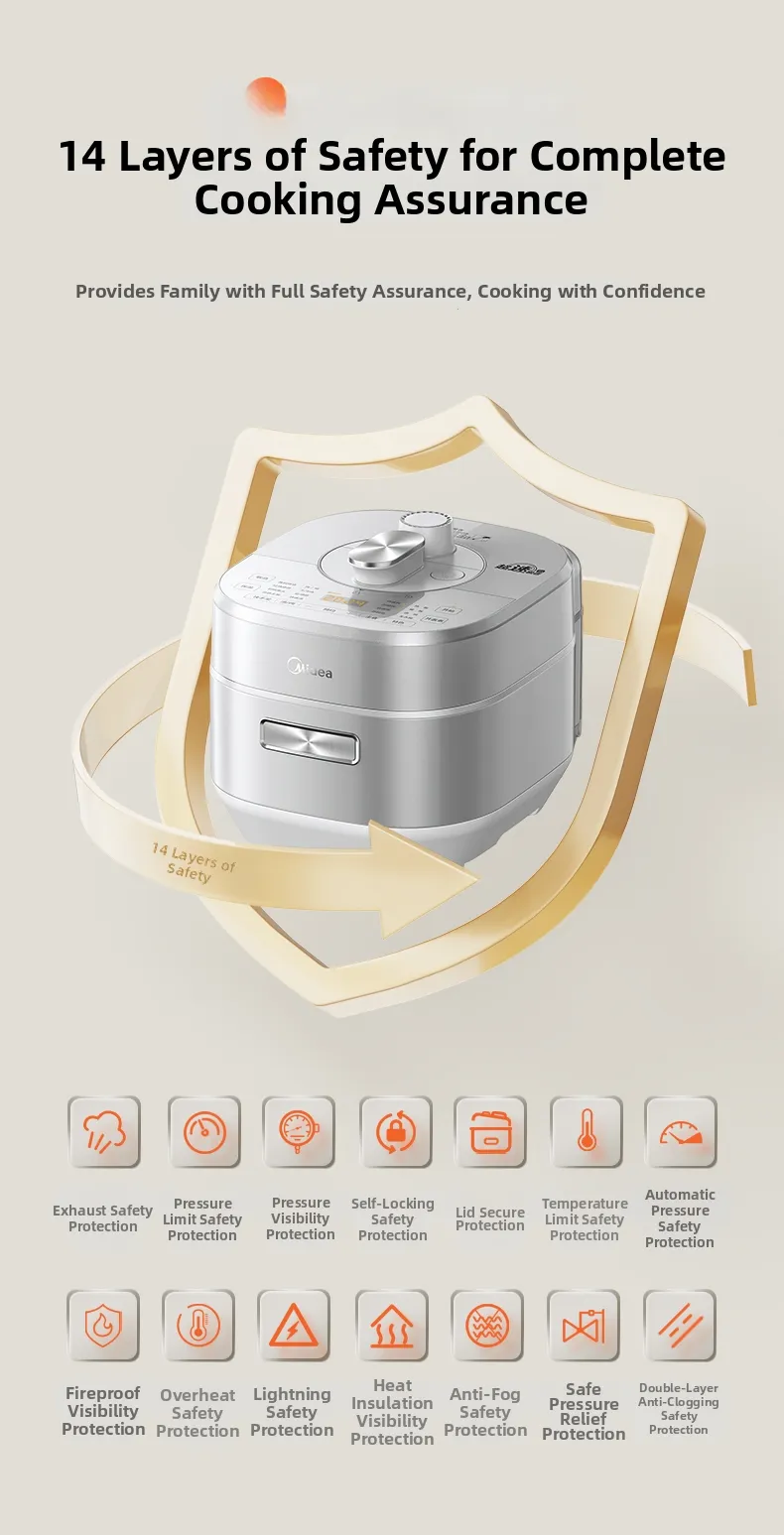 Designed for home use, this electric pressure cooker is a versatile addition to any kitchen, simplifying meal preparation.