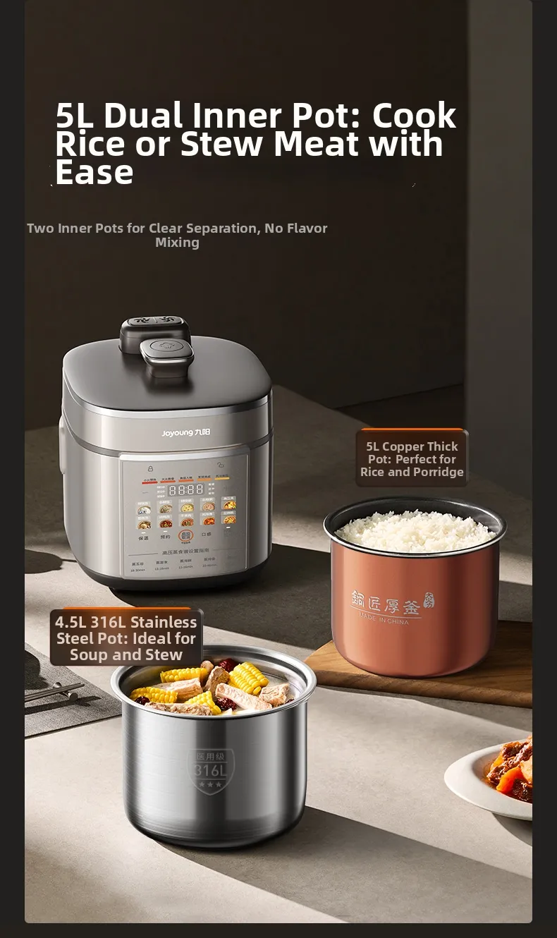 Featuring a dual vessel design, this cooker offers flexibility and efficiency, allowing you to cook two dishes simultaneously.