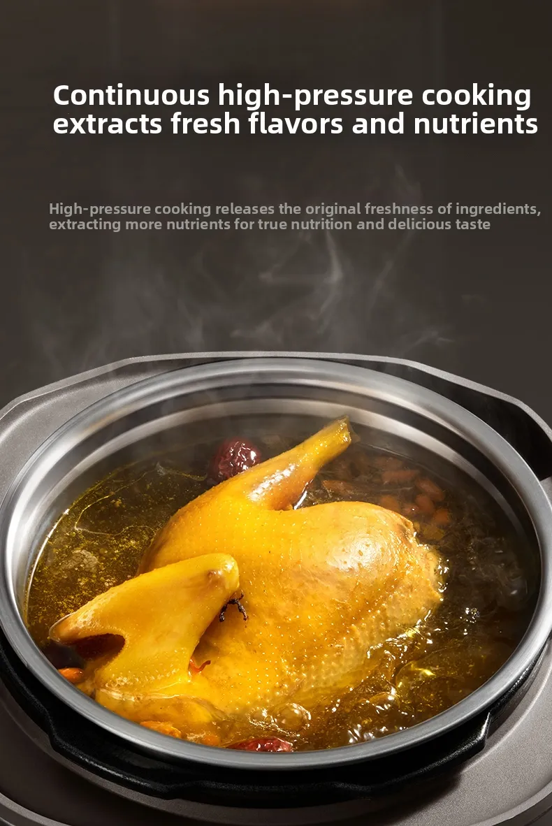 Designed for high-pressure cooking, this cooker ensures your food is cooked quickly and evenly, maintaining its nutritional value and taste.