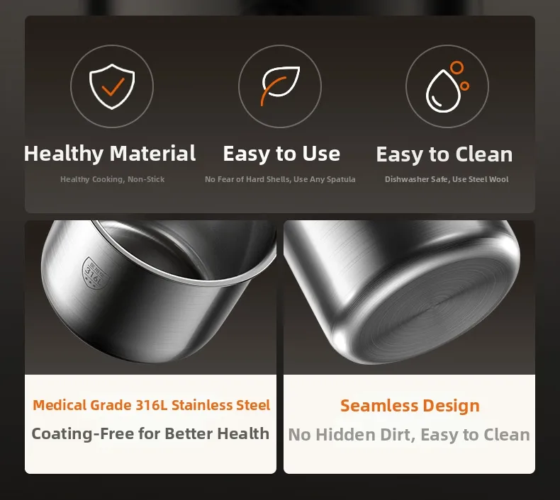 This cooker boasts a no-coating feature, eliminating the need for additional oils or fats, making it a healthier choice for your meals.