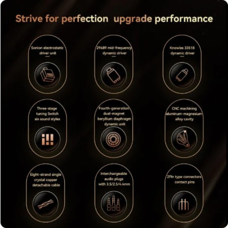 Sonion electrostatic driver unit I Two Knowles dynamic units | Fourth-generation dual-magnet beryllium diaphragm dynamic unit